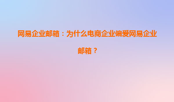 2025-08-03網(wǎng)易企業(yè)郵箱:為什么電商企業(yè)偏愛網(wǎng)易企業(yè)郵箱? 在數(shù)字化浪潮席卷全球的今天,電商行業(yè)作為互聯(lián)網(wǎng)經(jīng)濟的重要組成部分,對高效、安全、穩(wěn)定的通信工具需求日益增長。而網(wǎng)易企業(yè)郵箱憑借其卓越的性能...