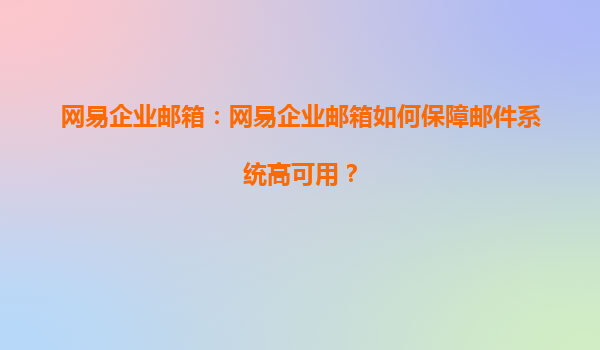 2025-08-03網(wǎng)易企業(yè)郵箱:如何保障郵件系統(tǒng)高可用? 在當(dāng)今數(shù)字化時代,企業(yè)郵箱已成為企業(yè)日常溝通和業(yè)務(wù)運營的重要工具。郵件系統(tǒng)的高可用性直接關(guān)系到企業(yè)的溝通效率和業(yè)務(wù)連續(xù)性。網(wǎng)易企業(yè)郵箱作為國內(nèi)領(lǐng)先的企業(yè)郵箱...