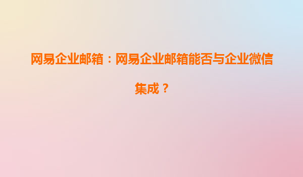 2025-08-02網(wǎng)易企業(yè)郵箱能否與企業(yè)微信集成?——高效協(xié)同辦公的新選擇 探索網(wǎng)易企業(yè)郵箱的集成優(yōu)勢與企業(yè)使用體驗 一、網(wǎng)易企業(yè)郵箱的核心優(yōu)勢 作為國內(nèi)領(lǐng)先的企業(yè)郵箱服務(wù)提供商,網(wǎng)易企業(yè)郵箱始終以"安全...