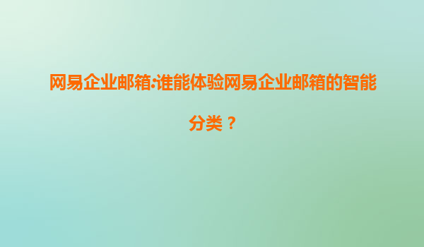 2025-07-23網(wǎng)易企業(yè)郵箱:誰(shuí)能體驗(yàn)網(wǎng)易企業(yè)郵箱的智能分類(lèi)? 一、網(wǎng)易企業(yè)郵箱智能分類(lèi)功能解析 網(wǎng)易企業(yè)郵箱作為國(guó)內(nèi)領(lǐng)先的企業(yè)級(jí)郵件服務(wù)商,其智能分類(lèi)功能基于強(qiáng)大的AI算法和海量數(shù)據(jù)訓(xùn)練,能...