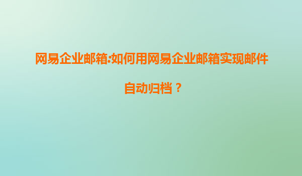 2025-07-20網(wǎng)易企業(yè)郵箱如何實(shí)現(xiàn)郵件自動(dòng)歸檔? 高效管理的必備功能 在現(xiàn)代企業(yè)中,郵件作為日常溝通的重要工具,其管理效率直接影響工作流程。網(wǎng)易企業(yè)郵箱的自動(dòng)歸檔功能幫助用戶(hù)將大量郵件按規(guī)則分類(lèi)存儲(chǔ),減...