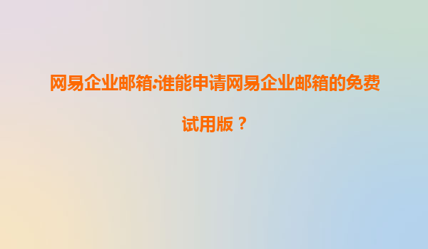 2025-07-18網(wǎng)易企業(yè)郵箱:誰能申請網(wǎng)易企業(yè)郵箱的免費試用版? 一、網(wǎng)易企業(yè)郵箱免費試用版的申請對象 網(wǎng)易企業(yè)郵箱作為國內(nèi)領(lǐng)先的企業(yè)級郵箱服務(wù)提供商,為滿足不同企業(yè)...