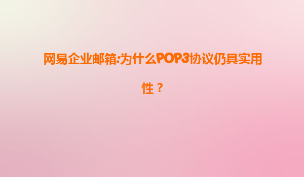 2025-07-15網(wǎng)易企業(yè)郵箱:為什么POP3協(xié)議仍具實(shí)用性? 一、POP3協(xié)議的核心價(jià)值與現(xiàn)狀 POP3(PostOfficeProtocolversion3)作為電子郵件接收的經(jīng)典協(xié)議,盡管當(dāng)前IMAP協(xié)議因同步功能更受歡迎,但其仍具備獨(dú)特的實(shí)...