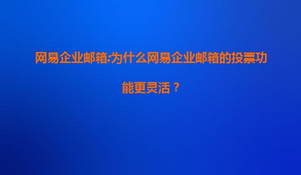 2025-07-15網(wǎng)易企業(yè)郵箱:為什么網(wǎng)易企業(yè)郵箱的投票功能更靈活? 一、網(wǎng)易企業(yè)郵箱投票功能的靈活設(shè)計(jì) 在當(dāng)今快節(jié)奏的商業(yè)環(huán)境中,高效決策和數(shù)據(jù)收集成為企業(yè)管理的關(guān)鍵。網(wǎng)易企業(yè)郵箱憑借其獨(dú)到的投票功能設(shè)...
