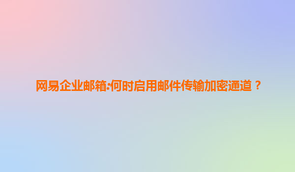 2025-07-15網(wǎng)易企業(yè)郵箱:何時(shí)啟用郵件傳輸加密通道? 一、郵件傳輸加密通道的重要性 在當(dāng)今數(shù)字化時(shí)代,企業(yè)郵件作為重要的溝通工具,承載著大量敏感信息。郵件傳輸過程中的安全性直接關(guān)系到企業(yè)的數(shù)據(jù)安全和商業(yè)機(jī)密。...