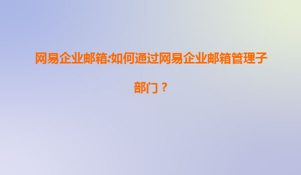 2025-07-15網(wǎng)易企業(yè)郵箱:如何通過網(wǎng)易企業(yè)郵箱管理子部門? 網(wǎng)易企業(yè)郵箱作為國(guó)內(nèi)領(lǐng)先的企業(yè)郵件服務(wù)提供商,憑借高效、安全、靈活的特點(diǎn),深受企業(yè)用戶信賴。在企業(yè)組織中,部門與子部門的層級(jí)管理尤為重要,而網(wǎng)易企業(yè)郵箱...