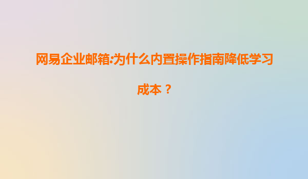 2025-07-14網(wǎng)易企業(yè)郵箱內(nèi)置操作指南:降低學(xué)習(xí)成本的關(guān)鍵 為什么內(nèi)置操作指南對學(xué)習(xí)成本至關(guān)重要? 企業(yè)郵箱作為日常辦公的核心工具,其上手難度直接影響團(tuán)隊(duì)效率。傳統(tǒng)模式下,員工需通過外部文檔或培訓(xùn)學(xué)習(xí)操作,...