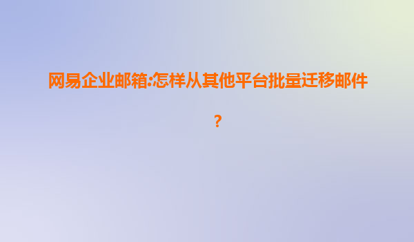 2025-07-14網(wǎng)易企業(yè)郵箱:怎樣從其他平臺批量遷移郵件? 一、郵件遷移的背景與意義 在數(shù)字化轉(zhuǎn)型的浪潮中,企業(yè)郵箱作為內(nèi)外溝通的重要工具,其穩(wěn)定性、安全性和功能體驗(yàn)直接影響企業(yè)運(yùn)營效率。當(dāng)企業(yè)因業(yè)務(wù)...