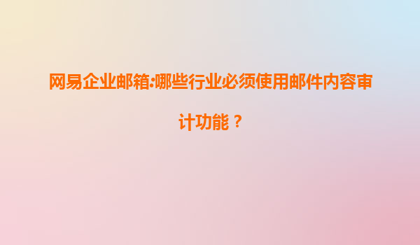 2025-07-12網(wǎng)易企業(yè)郵箱:哪些行業(yè)必須使用郵件內(nèi)容審計(jì)功能? 一、引言:企業(yè)郵箱與郵件審計(jì)的重要性 隨著企業(yè)信息化建設(shè)的深入,電子郵件已成為日常溝通和業(yè)務(wù)往來的核心工具之一。然而,信息泄露、數(shù)據(jù)安全和合規(guī)...