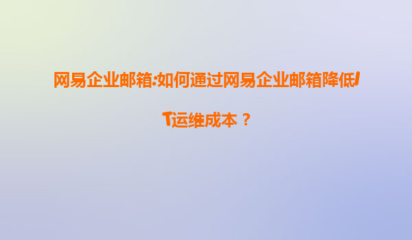 4008-020-360 網(wǎng)易企業(yè)郵箱:IT運(yùn)維成本高效解決方案 一、降低硬件投入與維護(hù)成本 傳統(tǒng)企業(yè)自建郵件系統(tǒng)需購置服務(wù)器、存儲設(shè)備等硬件設(shè)施,且需持續(xù)投入電力、機(jī)房等運(yùn)維資源。網(wǎng)易企業(yè)郵箱采用云端SaaS服務(wù)模式,...