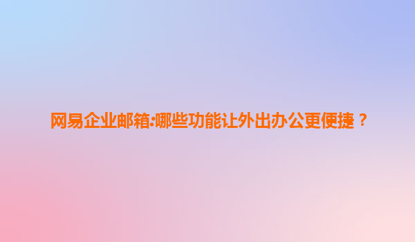 2025-07-12網(wǎng)易企業(yè)郵箱:哪些功能讓外出辦公更便捷? 導(dǎo)言 在當(dāng)今數(shù)字化時代,外出辦公已成為許多企業(yè)和員工的常態(tài)。無論是出差、遠(yuǎn)程辦公還是臨時會議,企業(yè)郵箱作為溝通協(xié)作的核心工具,其功能和體驗(yàn)直接影響了工...