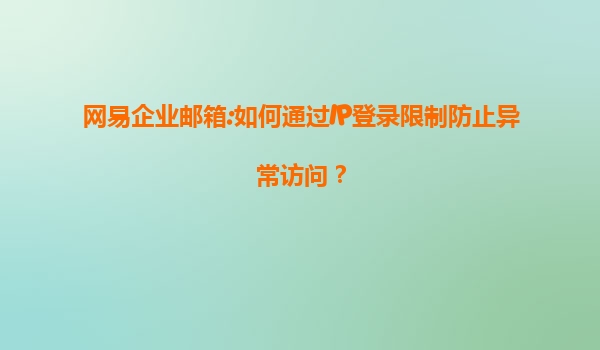2025-07-12網(wǎng)易企業(yè)郵箱:如何通過IP登錄限制防止異常訪問? 一、網(wǎng)易企業(yè)郵箱的核心安全優(yōu)勢 在數(shù)字化辦公時代,企業(yè)郵箱不僅是溝通工具,更是數(shù)據(jù)安全的屏障。網(wǎng)易企業(yè)...