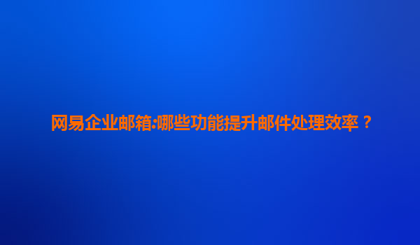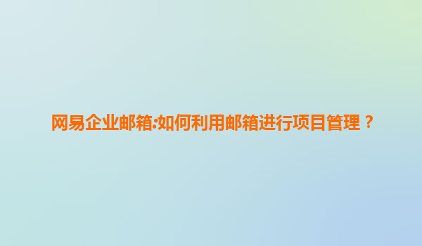 2025-07-11網(wǎng)易企業(yè)郵箱:如何利用郵箱進行項目管理? 在當(dāng)今快節(jié)奏的商業(yè)環(huán)境中,高效的項目管理是企業(yè)成功的關(guān)鍵因素之一。而網(wǎng)易企業(yè)郵箱憑借其強大的功能和穩(wěn)定的性能,成為了眾多企業(yè)進行項目管理的得力助手。本文...