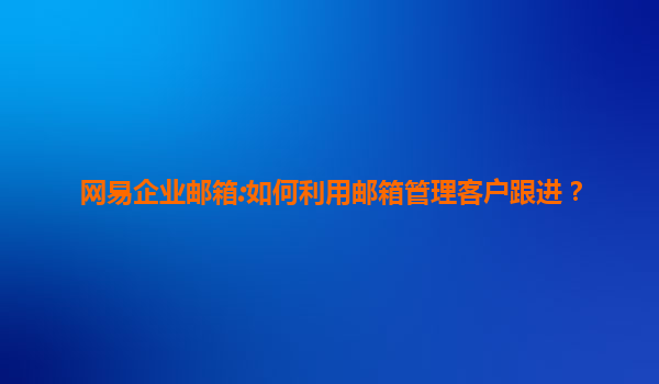 2025-07-11網(wǎng)易企業(yè)郵箱:如何利用郵箱管理客戶跟進? 前言 在當(dāng)今數(shù)字化時代,郵件依然是企業(yè)與客戶溝通的重要工具之一。尤其是對于銷售團隊而言,高效的客戶跟進不僅關(guān)系到業(yè)務(wù)發(fā)展,也直接影響客戶體驗。網(wǎng)易企業(yè)...