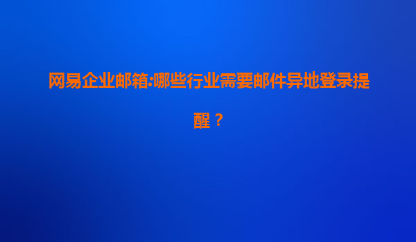 2025-07-11哪些行業(yè)需要郵件異地登錄提醒? 在當(dāng)今數(shù)字化辦公環(huán)境中,企業(yè)郵箱作為重要溝通工具,承載著大量敏感信息。異地登錄提醒功能可有效防范賬號被盜或異常訪問的風(fēng)險。網(wǎng)易企業(yè)郵箱憑借其安全穩(wěn)定的服務(wù),為各行業(yè)...