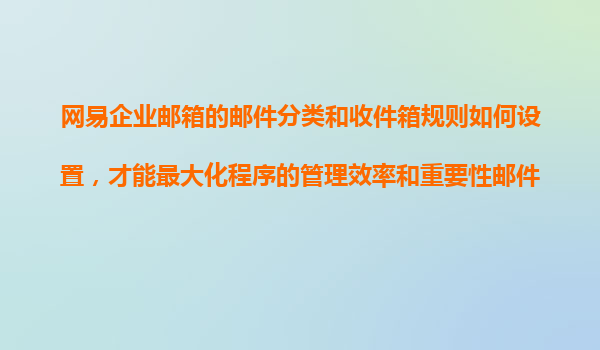 4008-020-360 網(wǎng)易企業(yè)郵箱郵件分類與收件箱規(guī)則設(shè)置指南:提升管理效率與重要郵件提醒 一、網(wǎng)易企業(yè)郵箱的核心優(yōu)勢 網(wǎng)易企業(yè)郵箱作為國內(nèi)領(lǐng)先的企業(yè)級郵箱服務(wù),具有以下核心優(yōu)勢: 穩(wěn)定可靠的系統(tǒng)架構(gòu):采用分...