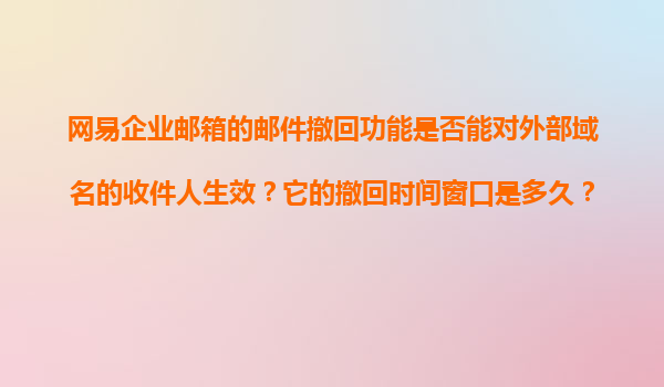 2025-11-08網(wǎng)易企業(yè)郵箱郵件撤回功能詳解:外部域名適用性與時效分析 一、網(wǎng)易企業(yè)郵箱核心優(yōu)勢概覽 網(wǎng)易企業(yè)郵箱作為國內(nèi)領(lǐng)先的企業(yè)級郵件服務(wù)提供商,擁有多項核心競爭優(yōu)勢:銀行級數(shù)據(jù)加密保障通信安全、智能反垃...