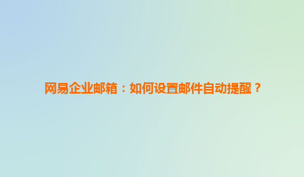 2025-07-03網(wǎng)易企業(yè)郵箱郵件自動(dòng)提醒功能詳解 一、為何選擇網(wǎng)易企業(yè)郵箱的自動(dòng)提醒功能 在當(dāng)今快節(jié)奏的商業(yè)環(huán)境中,及時(shí)處理重要郵件至關(guān)重要。網(wǎng)易企業(yè)郵箱提供的郵件自動(dòng)提醒功能可以幫助用戶不錯(cuò)過(guò)任何關(guān)鍵信息,提高工作...
