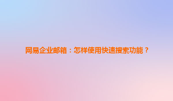 4008-020-360 網(wǎng)易企業(yè)郵箱:怎樣使用快速搜索功能? 網(wǎng)易企業(yè)郵箱的優(yōu)勢(shì) 網(wǎng)易企業(yè)郵箱作為國(guó)內(nèi)領(lǐng)先的企業(yè)級(jí)郵箱服務(wù),憑借其穩(wěn)定、安全、高效的特性,贏得了眾多企業(yè)的青睞。以下是網(wǎng)易企業(yè)郵箱...