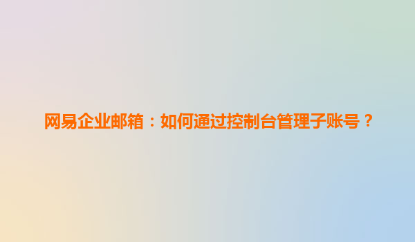 2025-07-04網(wǎng)易企業(yè)郵箱:如何通過(guò)控制臺(tái)管理子賬號(hào)? 一、網(wǎng)易企業(yè)郵箱的優(yōu)勢(shì) 網(wǎng)易企業(yè)郵箱作為國(guó)內(nèi)領(lǐng)先的企業(yè)級(jí)郵箱服務(wù)提供商,憑借其穩(wěn)定、安全、高效的特點(diǎn),深受企業(yè)用戶的信賴。以下是網(wǎng)易企業(yè)郵箱的主要優(yōu)勢(shì)...