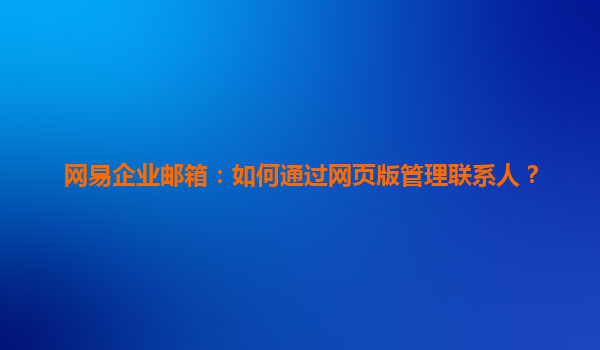 2025-07-02網(wǎng)易企業(yè)郵箱:如何通過網(wǎng)頁版管理聯(lián)系人? 前言:高效聯(lián)系人管理的重要性 在現(xiàn)代商業(yè)環(huán)境中,高效的通信和聯(lián)系人管理是企業(yè)成功的關(guān)鍵因素之一。網(wǎng)易企業(yè)郵箱作為國內(nèi)領(lǐng)先的企業(yè)郵箱服務(wù)提供商,不僅提供了穩(wěn)定可...