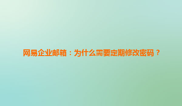 2025-07-02網(wǎng)易企業(yè)郵箱:為什么需要定期修改密碼? 在當(dāng)今數(shù)字化時(shí)代,電子郵件已成為企業(yè)與客戶、合作伙伴及員工之間溝通的重要工具。然而,隨著網(wǎng)絡(luò)安全威脅的不斷增加,保護(hù)企業(yè)郵箱的安全性變得尤為重要。定期修改密碼是...