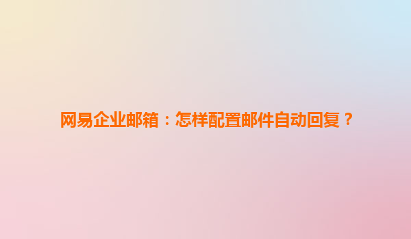2025-07-02網(wǎng)易企業(yè)郵箱:怎樣配置郵件自動(dòng)回復(fù)? 在商務(wù)溝通中,郵件自動(dòng)回復(fù)功能能夠確保及時(shí)響應(yīng)客戶需求,提升企業(yè)專業(yè)形象。網(wǎng)易企業(yè)郵箱作為國內(nèi)領(lǐng)先的企業(yè)級郵件服務(wù),提供了高效穩(wěn)定的自動(dòng)回復(fù)配置功能。本文...