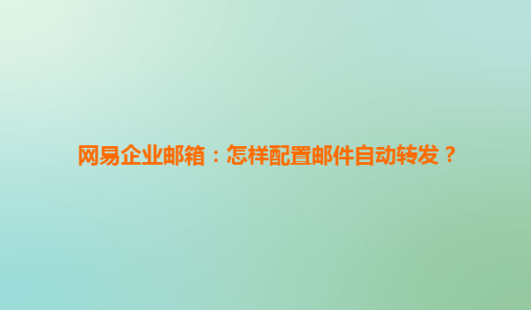 2025-07-02網(wǎng)易企業(yè)郵箱:郵件自動轉(zhuǎn)發(fā)配置指南 一、什么是郵件自動轉(zhuǎn)發(fā)? 郵件自動轉(zhuǎn)發(fā)是指用戶通過設(shè)置,將接收到的郵件自動轉(zhuǎn)發(fā)至指定的其他郵箱地址,無需手動操作。這一功能在企業(yè)辦公中非常實用,...