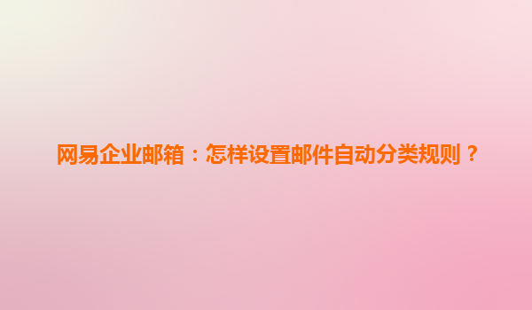 2025-07-01網(wǎng)易企業(yè)郵箱郵件自動分類規(guī)則設(shè)置指南 在現(xiàn)代企業(yè)管理中,高效的郵件處理能力至關(guān)重要。網(wǎng)易企業(yè)郵箱作為國內(nèi)領(lǐng)先的企業(yè)級郵箱服務(wù),提供了強(qiáng)大的郵件自動分類功能,幫助企業(yè)用戶輕松管理海量郵件,提升工作效率。...
