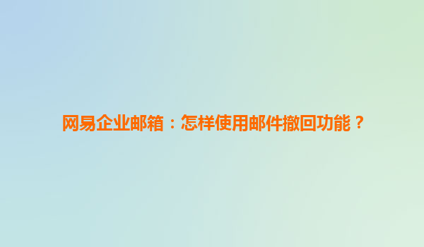 2025-07-01網(wǎng)易企業(yè)郵箱:郵件撤回功能詳解與優(yōu)勢解析 一、郵件撤回功能的使用方法 在工作中,郵件誤發(fā)或內(nèi)容錯誤的情況時有發(fā)生。網(wǎng)易企業(yè)郵箱提供的郵件撤回功能能有效...