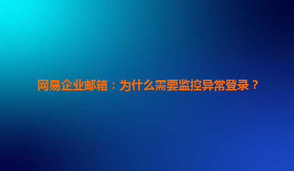 2025-07-01網(wǎng)易企業(yè)郵箱:為什么需要監(jiān)控異常登錄? 引言 在數(shù)字化辦公時代,企業(yè)郵箱不僅是溝通工具,更是企業(yè)數(shù)據(jù)安全的重要防線。隨著網(wǎng)絡(luò)攻擊手段的多樣化,郵箱賬號被盜用、敏感信息泄露等風(fēng)險日益增加。網(wǎng)易企...