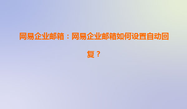 網(wǎng)易企業(yè)郵箱如何設(shè)置自動(dòng)回復(fù)