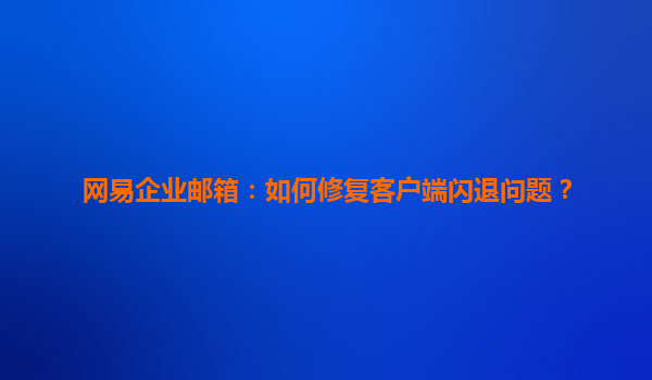 網(wǎng)易企業(yè)郵箱:如何修復(fù)客戶(hù)端閃退問(wèn)題?