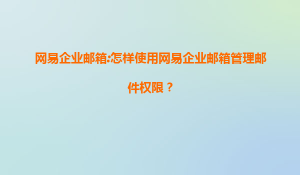 網(wǎng)易企業(yè)郵箱:高效管理郵件權(quán)限的完整指南