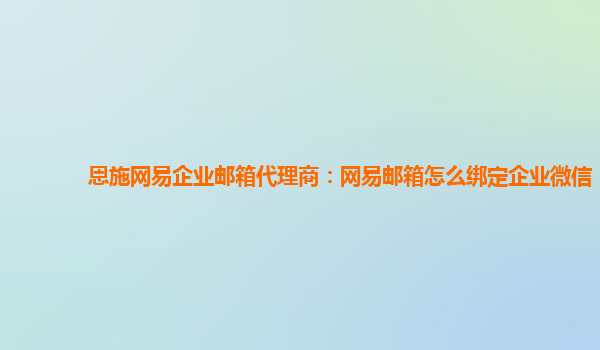 恩施網易企業郵箱代理商:網易郵箱怎么綁定企業微信