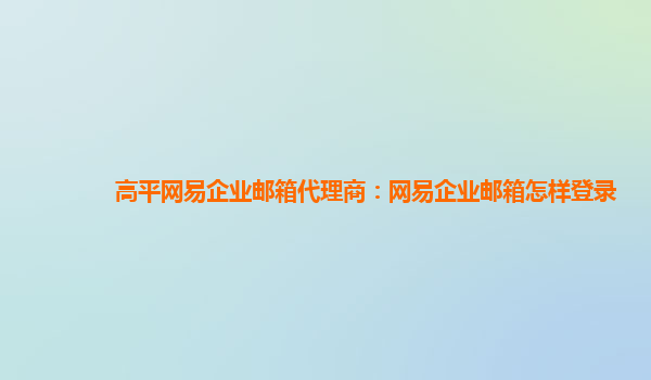 高平網易企業郵箱代理商:網易企業郵箱怎樣登錄