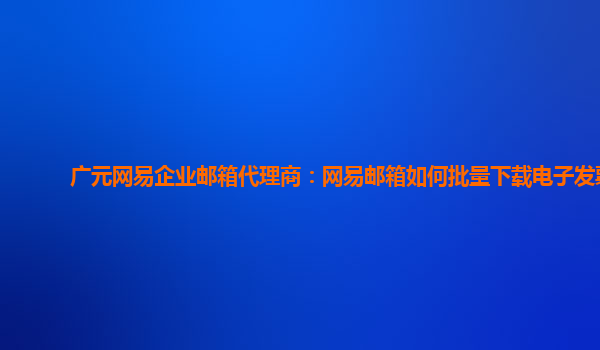 在當今信息化的時代,電子郵件已成為企業日常工作中必不可少的通信工具。近年來,廣元網易企業郵箱代理商受到了越來越多企業的青睞。其中,一項被廣大用戶推崇的功能就是電子發票批量下載功能。下面,我們就以此為主題,分享使用網易企業郵箱后的感受。