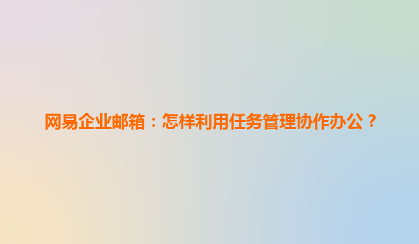 2025-06-28網(wǎng)易企業(yè)郵箱:怎樣利用任務(wù)管理功能實現(xiàn)高效協(xié)作辦公? 一、為什么企業(yè)需要任務(wù)管理協(xié)作? 在快節(jié)奏的現(xiàn)代辦公環(huán)境中,跨部門協(xié)作項目占比超過68%(數(shù)據(jù)來源:2023企業(yè)數(shù)字化白皮書)。...