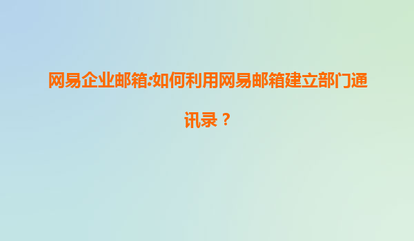 2025-06-25高效協(xié)同第一步:利用網(wǎng)易企業(yè)郵箱建立部門通訊錄全攻略 為什么部門通訊錄是企業(yè)高效協(xié)作的基石? 在快節(jié)奏的商業(yè)環(huán)境中,部門通訊錄如同企業(yè)的神經(jīng)網(wǎng)絡(luò):市場(chǎng)...