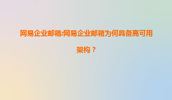 2025-06-24網(wǎng)易企業(yè)郵箱為何具備高可用架構(gòu)? 在數(shù)字化時(shí)代,企業(yè)郵箱已成為商務(wù)溝通的核心工具,其穩(wěn)定性直接影響業(yè)務(wù)運(yùn)營(yíng)效率。網(wǎng)易企業(yè)郵箱作為國(guó)內(nèi)領(lǐng)先的企業(yè)級(jí)郵箱服務(wù),憑借其高可用架構(gòu)脫穎而出,確保服務(wù)不間斷、...