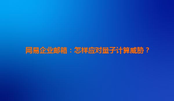 2025-06-16網(wǎng)易企業(yè)郵箱:怎樣應對量子計算威脅? 一、前言 隨著科技的飛速進步,量子計算技術逐漸從理論走向應用。量子計算以其超強的運算能力,被認為將對當前信息安全體系帶來革命性的沖擊。尤其是在數(shù)據(jù)...