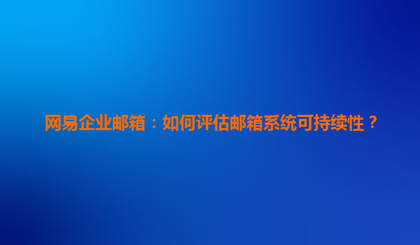 4008-020-360 網(wǎng)易企業(yè)郵箱:如何評估郵箱系統(tǒng)可持續(xù)性? 隨著數(shù)字化辦公不斷深入,企業(yè)對于高效、安全、穩(wěn)定的郵箱系統(tǒng)需求顯著提升。郵箱系統(tǒng)作為企業(yè)對內溝通和對外聯(lián)絡的重要工具,具備良好的可持續(xù)性尤為關鍵。...
