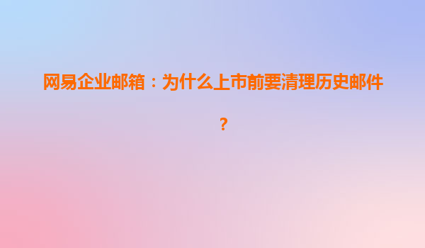 2025-06-16網(wǎng)易企業(yè)郵箱:為什么上市前要清理歷史郵件? 一、引言 隨著越來越多的企業(yè)邁向資本市場,上市成為眾多公司發(fā)展的重要里程碑。上市不僅能夠為企業(yè)帶來資金支持,也是企業(yè)品牌和規(guī)范管理的重要體現(xiàn)...