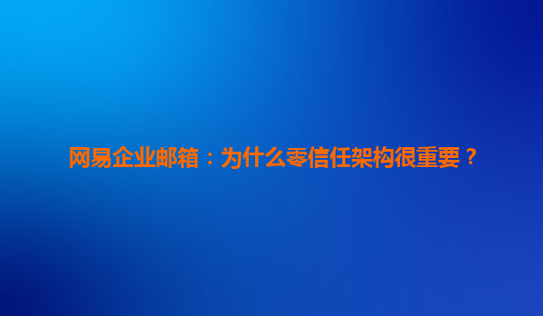 2025-06-16網(wǎng)易企業(yè)郵箱:為什么零信任架構很重要? 隨著信息化時代的快速發(fā)展,企業(yè)的數(shù)據(jù)安全和信息保護問題日益突出。尤其是在企業(yè)日常辦公中,郵箱作為內部與外部溝通的重要工具,承載了大量敏感信息。近幾年...