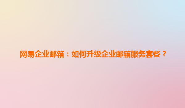 2025-04-28如何升級網(wǎng)易企業(yè)郵箱服務(wù)套餐? 隨著企業(yè)的發(fā)展,郵箱服務(wù)的需求也不斷增加。網(wǎng)易企業(yè)郵箱以其穩(wěn)定性、安全性和高效性,成為了許多企業(yè)郵箱服務(wù)的首選。然而,隨著業(yè)務(wù)的擴(kuò)展,企業(yè)郵箱的使用需求也在不...