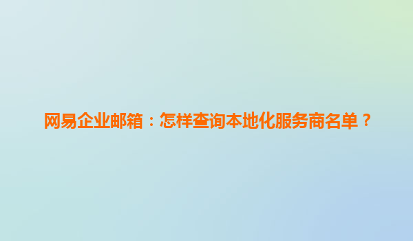 2025-04-27網(wǎng)易企業(yè)郵箱:怎樣查詢本地化服務(wù)商名單? 在數(shù)字化時(shí)代,企業(yè)郵箱已成為企業(yè)日常辦公和溝通的基本工具之一。作為國內(nèi)領(lǐng)先的互聯(lián)網(wǎng)公司,網(wǎng)易提供的企業(yè)郵箱不僅具備高效、穩(wěn)定的特點(diǎn),還具備了個(gè)性化的本...