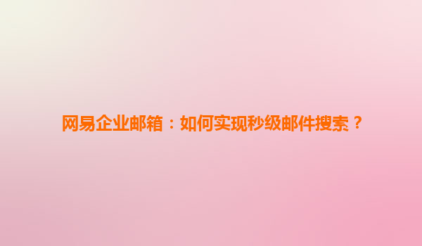 2025-04-28網(wǎng)易企業(yè)郵箱:如何實(shí)現(xiàn)秒級郵件搜索? 在如今這個(gè)信息化高速發(fā)展的時(shí)代,企業(yè)的郵件溝通變得日益頻繁與重要。尤其是對于大中型企業(yè),郵件不僅僅是日常溝通的工具,更是信息存儲和重要決策的載體。然而,隨著郵件數(shù)...