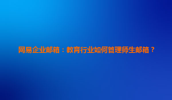 2025-04-28網(wǎng)易企業(yè)郵箱:教育行業(yè)如何管理師生郵箱? 隨著信息技術(shù)的快速發(fā)展,電子郵件已經(jīng)成為教育行業(yè)中師生溝通和信息傳遞的重要工具。對于教育機(jī)構(gòu)而言,如何高效、安全地管理師生郵箱,已成為提升教學(xué)效率和管理水平的...