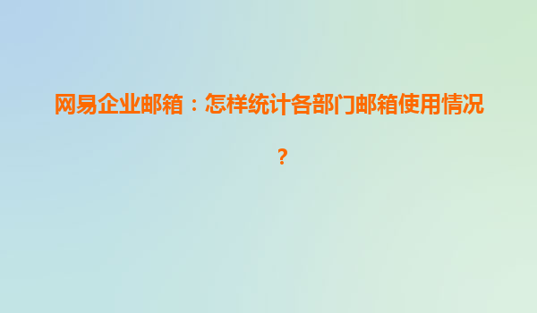 2025-04-27網(wǎng)易企業(yè)郵箱:怎樣統(tǒng)計各部門郵箱使用情況? 在現(xiàn)代企業(yè)管理中,郵箱已經(jīng)成為了日常溝通和協(xié)作的重要工具。尤其是對于大型企業(yè),如何有效地管理和統(tǒng)計各部門郵箱的使用情況,成為了提升工作效率和數(shù)據(jù)安全的關(guān)鍵。...