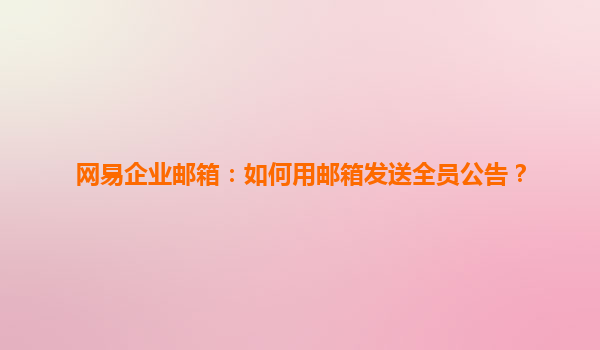 2025-04-27如何使用網(wǎng)易企業(yè)郵箱發(fā)送全員公告? 隨著企業(yè)規(guī)模的不斷擴大,員工之間的溝通和信息傳遞顯得尤為重要。為了確保信息的及時傳達,企業(yè)往往需要一種便捷、可靠且高效的方式來向所有員工發(fā)布公告。網(wǎng)易企業(yè)郵箱,...